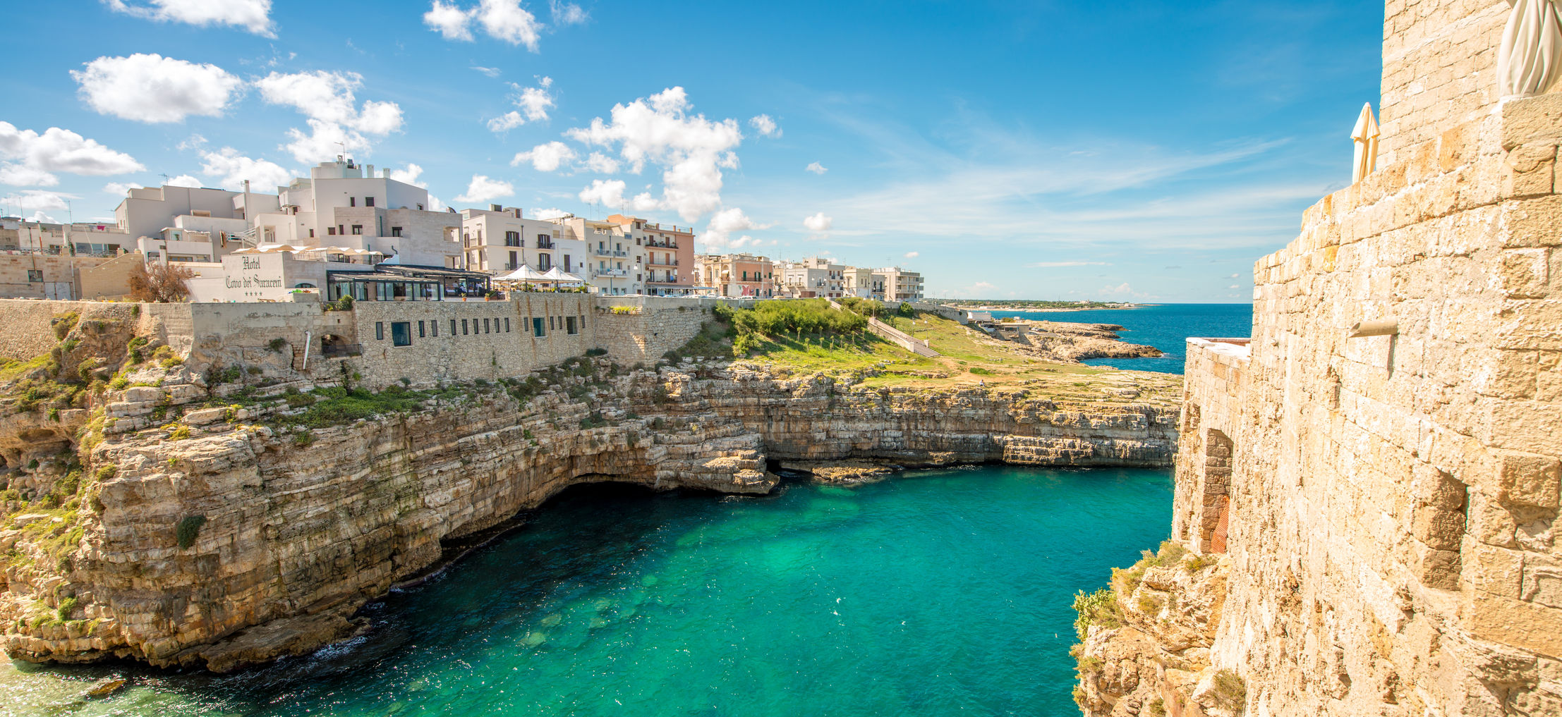 A sud di Bari, non molto distante da Alberobello, sorge il borghetto pugliese, a picco sul mare situato sull’orlo di una scogliera, chiamato “Polignano a Mare”: è la città di Domenico Modugno ed uno dei paesini più visitati e fotografati della Puglia.