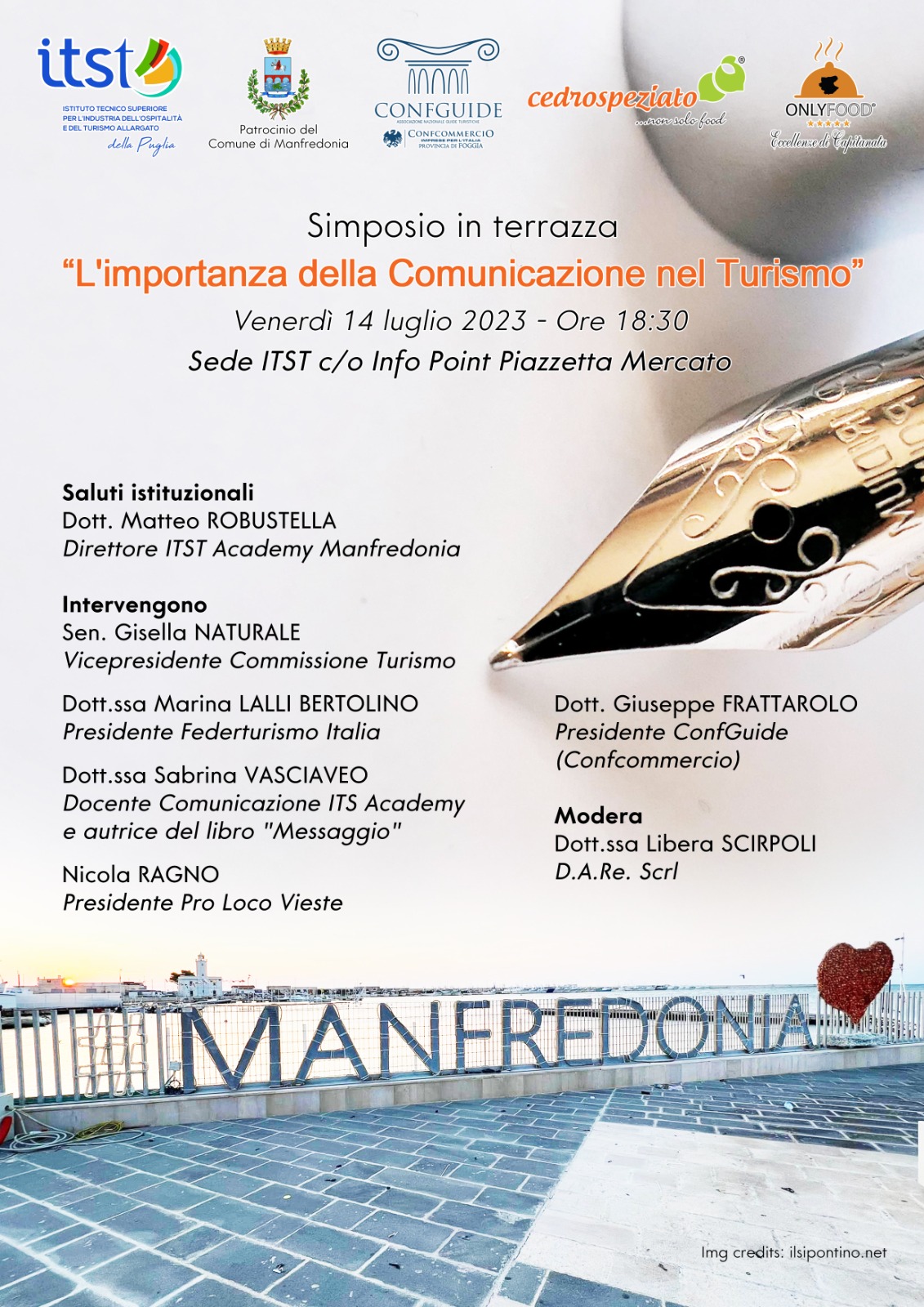 Nell’accogliente cornice della terrazza dell’Info Point di piazzetta mercato a Manfredonia, nel pomeriggio di venerdì 14 luglio si svolgerà l’incontro sul ruolo della comunicazione nel settore turistico, un momento di scambio culturale di sicuro interesse per la città riconosciuta porta del Gargano.