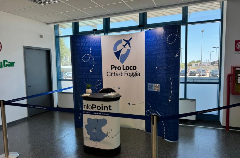 FOGGIA – All’aeroporto “Gino Lisa” prende vita un nuovo spazio dedicato all’accoglienza dei turisti: è l’InfoPoint curato dalla Pro Loco, pensato per offrire ai passeggeri in arrivo un primo contatto con l’identità e l’ospitalità del territorio. I lavori di allestimento sono stati ultimati e l’apertura ufficiale è prevista nei prossimi giorni.