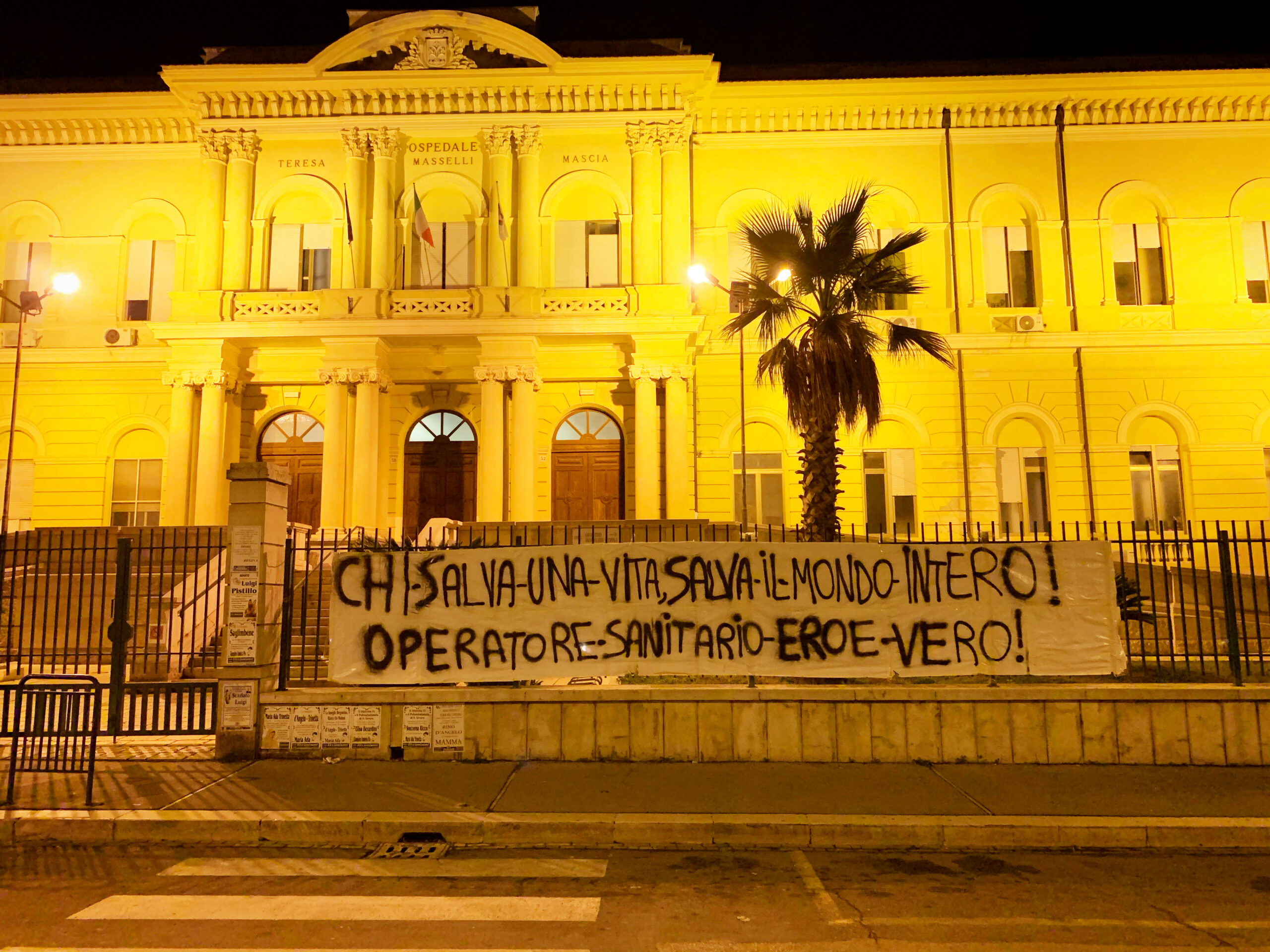 “Ieri sera ci siamo recati presso l’ospedale Teresa Masselli e abbiamo voluto lasciare un messaggio per tutti i medici, gli infermieri e gli operatori sanitari che in questo momento stanno combattendo in prima linea contro questo virus maledetto.” – dicono i ragazzi di San Severo Siamo Noi.