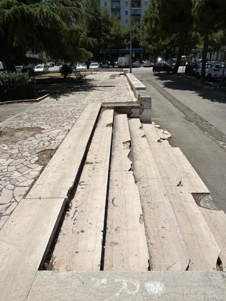 FOGGIA – Il consigliere comunale Nunzio Angiola in una nota denuncia il degrado di Piazza Puglia: “Ci sono tutti gli ingredienti che fanno della centralissima Piazza Puglia, l’emblema del degrado cittadino. Dai rami degli alberi che quasi arrivano a terra, invadendo la pavimentazione già molto deteriorata e impedendo il passaggio delle persone, fino alle panchine sfregiate; dalla sporcizia e dai rifiuti fino ai segni di un violento vandalismo ai danni di scale e muri perimetrali, per non parlare di detriti sparsi dovunque e svariati graffiti non artistici; i nuovi corpi luminosi a led irradiano luce dall’alto bel al di sopra delle folte chiome degli alberi secolari, lasciando nell’ombra la parte sottostante e alcuni punti della piazza al buio pesto, rendono la piazza insicura di notte, fino al degrado degli edifici circostanti, tutti a loro volta massivamente imbrattati. E se pensiamo – ha continuato Angiola – che la piazza di colloca sull’ingresso della Facoltà di ingegneria e sul fianco laterale dell’Istituto Altamura-Da Vinci e che quindi prima della chiusura delle scuole e del termine delle lezioni universitarie passavano lì vicino tutti i giorni centinaia di studenti; se pensiamo che la piazza ha un’alta densità demografica, se pensiamo che si passa da via Rotundi per raggiugere Piazza Italia e il dipartimento di Economia di via Caggese; se pensiamo che transitano in quella piazza migliaia di autovetture ogni giorno; se pensiamo che sulla piazza insistono uffici pubblici, che insiste un supermercato, un benzinaio e una banca, insieme ad altre attività commerciali, il messaggio che si trasmette all’intera comunità cittadina e ai forestieri che arrivano a Foggia è distruttivo, un messaggio di lassismo, menefreghismo e mancanza di serietà. Non è questa la nostra città, non ci piace, non la vogliamo, si ponga rimedio!”.