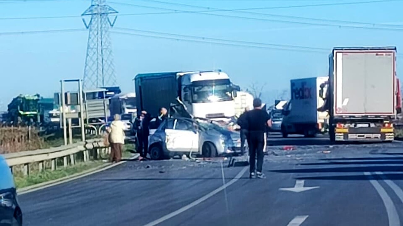 Brutto incidente, questa mattina intorno alle nove, sulla tangenziale di Foggia in direzione Lucera. Il sinistro, avvenuto in corrispondenza del km 30,000, ha coinvolto un mezzo pesante ed un’autovettura. Il violento impatto ha provocato danni ingenti al veicoli ed ha causato il ferimento di due persone. La strada è stata chiusa al traffico per alcune ore.