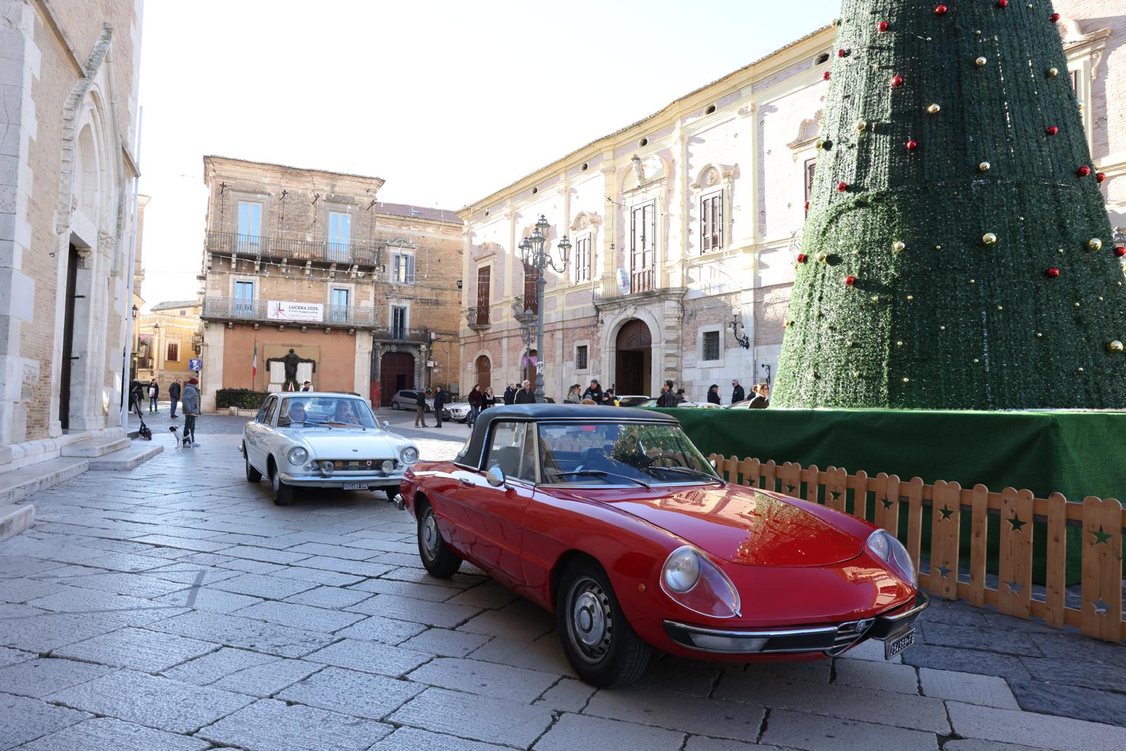 LUCERA – Si è svolta ieri – ultima domenica del 2025 – la tappa conclusiva di Ruote nella Storia 2025, evento organizzato dall’Automobile Club Foggia, che ha concluso una stagione ricca di iniziative dedicate agli appassionati di auto storiche. La manifestazione si è tenuta a Lucera, che quest’anno è stata nominata Capitale della Cultura in Puglia, rappresentando un contesto perfetto per celebrare la storia dell’automobile e quella del territorio.