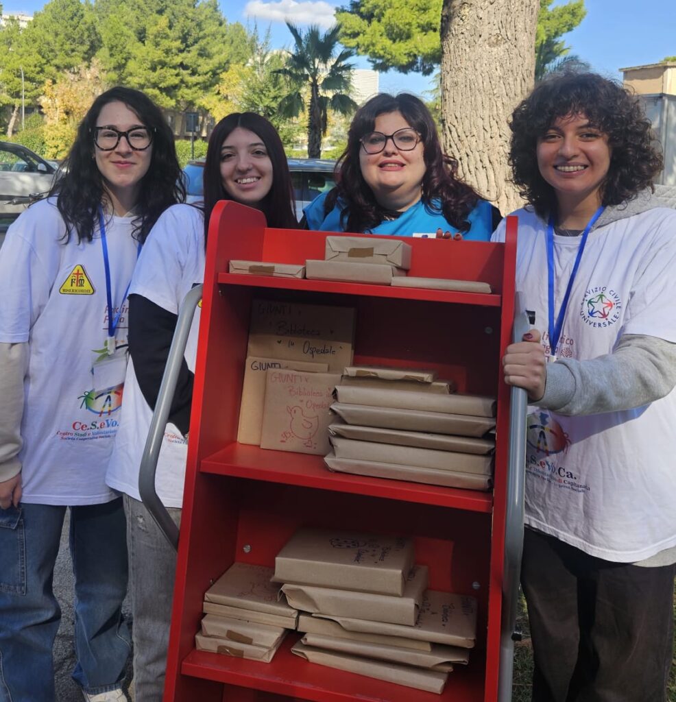 Le volontarie e i volontari, guidati dalla presidente Laura Pipoli, hanno portato nei reparti di Neuropsichiatria Infantile, Chirurgia Pediatrica e Pediatria del Policlinico “Riuniti” di Foggia un dono speciale: libri per bambini e ragazzi, offerti con il sorriso e con la collaborazione delle librerie “Giunti al Punto” di Foggia, rappresentate da Monica Pece e Raffaella Berardi.