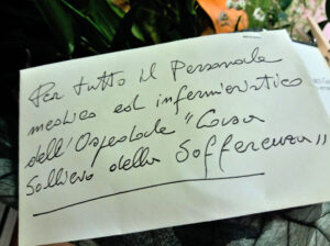 L’infermiera continua: “Sono rimasta senza parole, mi sono commossa. Ho capito che non siamo invisibili ai malati e ai loro familiari. Ho capito che non conta cosa fai ma come lo fai e tutto questo mi piace pensare che possa valere anche per me, che dopo tanti anni di Ospedale adesso lavoro con un incarico da ufficio.