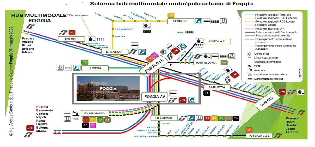 “La fermata/stazione AV è stata collocata da RFI esattamente dov’era prevista dalla delibera 13/2017 e il rappresentante di RFI spa ha affermato e proiettato slide che prefigurano, anche tecnicamente, la predisposizione realizzativa con l’evoluzione in 2^ fase a stazione. Ciò dà riprova dell’oculata pianificazione posta in essere dal Comune per evitare che Foggia fosse bypassata – rimarca il politico foggiano esperto di infrastrutture, reti e trasporti – e l’impellente necessità, però, dell’impegno dei parlamentari foggiani e del resto dei rappresentanti politici e delle parti sociali, al fine di promuovere la copertura finanziaria per consentire la realizzazione della 2^ fase. Va sollecitata, inoltre, la realizzazione del collegamento ferroviario, come si sta facendo a Salerno, dalla stazione AV all’aeroporto Gino Lisa. In tal modo l’estensione degli attuali servizi ferroviari da Lucera e Peschici Calenella a Foggia centrale fino a Foggia AV e da qui allo scalo aereo permetterebbero, tecnicamente, una sola “rottura di carico”, più semplicemente l’intermodalità con un solo cambio di vettore a vantaggio dell’accessibilità e lo sviluppo sostenibile di tutta la Capitanata e il resto dell’area vasta. Lo schema di HUB MULTIMODALE, redatto congiuntamente con l’ing. Casto e pubblicato a maggio del 2022, sta prendendo concretamente forma. Necessita però proseguire all’unisono, con coesione e unità d’intenti per far sì che si realizzi la stazione AV e si attui quanto previsto dalla delibera 13/2017 in perfetta assonanza con le previsioni Regolamento UE n. 1679/2024 entrato in vigore lo scorso 18 luglio. Nelle dichiarazioni postume all’incontro pare che ciò sia sfuggito… seppur riportato nelle linee programmatiche di mandato.”