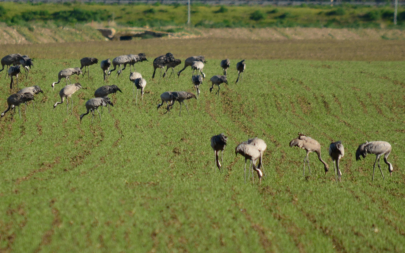 La gru euroasiatica o cenerina (Grus grus Linneo, 1758) è un uccello migratore di dimensioni medio-grandi alto anche fino a 120 cm con un peso medio di 4-5 Kg (ma può arrivare anche a 7 kg di peso) e un’apertura alare di circa 2 m, una specie fra le più iconiche ed evocative di territori selvaggi e incontaminati. Nel secolo scorso, a causa della totale trasformazione del Tavoliere, da una immensa “savana” ospitante la millenaria pratica della pastorizia transumante in piana monocolturale del grano, si è verificata la quasi totale scomparsa della sua presenza nel periodo invernale. Straordinariamente la specie seppe riprendersi e al trend positivo delle popolazioni nidificanti in Nord Europa, fece riscontro un lento, ma costante aumento dei gruppi che decidevano di trascorrere l’inverno nel Tavoliere.
