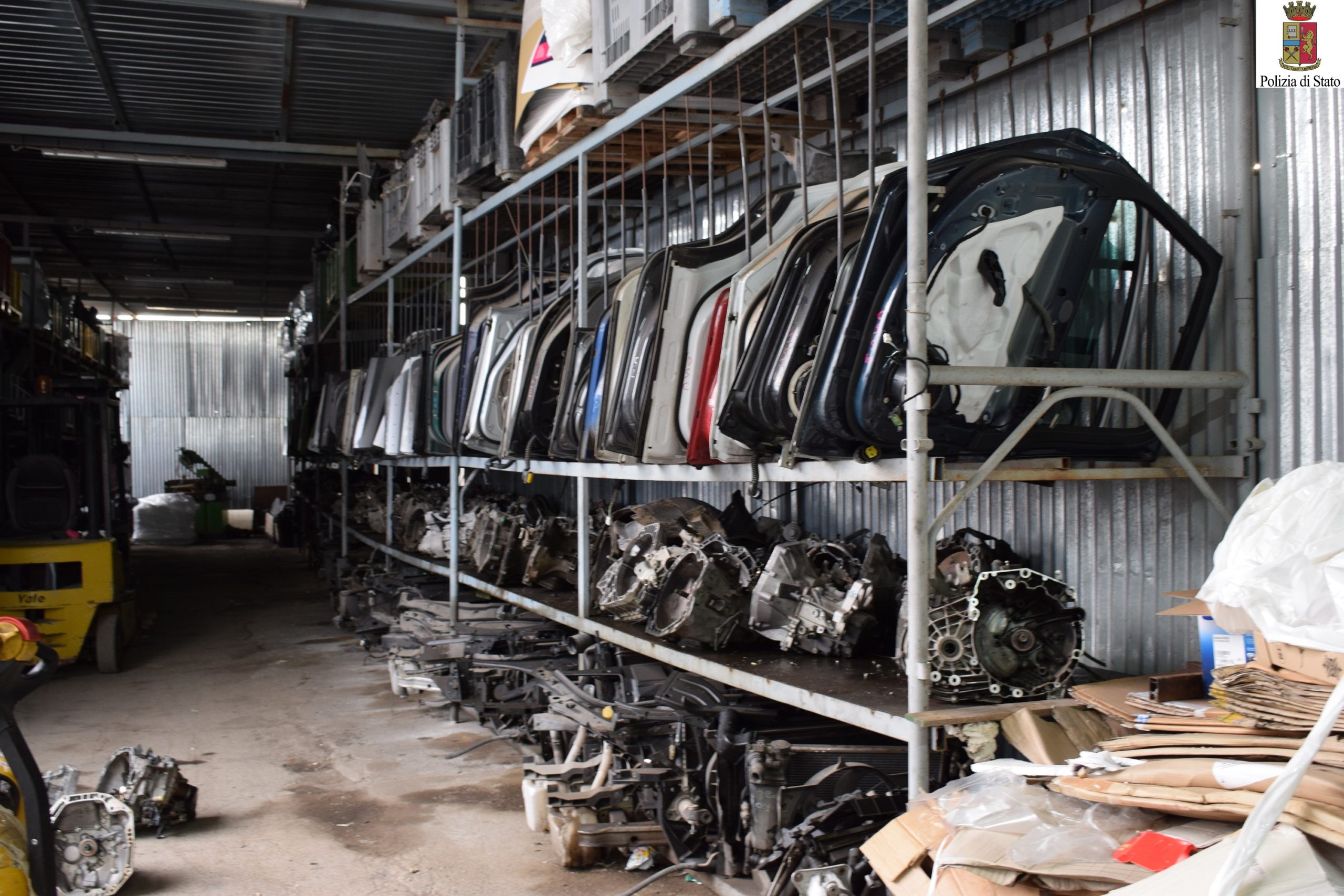 E ancora: componenti di un’autovettura Audi Q7, due cambi per auto e automezzo pesante, appartenenti ad autoveicoli rubati, 14 frontali per cabine di automezzi pesanti, 8 cassoni per automezzi pesanti privi di contrassegno identificativo 38 assali per automezzi pesanti, oltre un centinaio di pneumatici, una ottantina di porte per furgoni ed automezzi industriali.