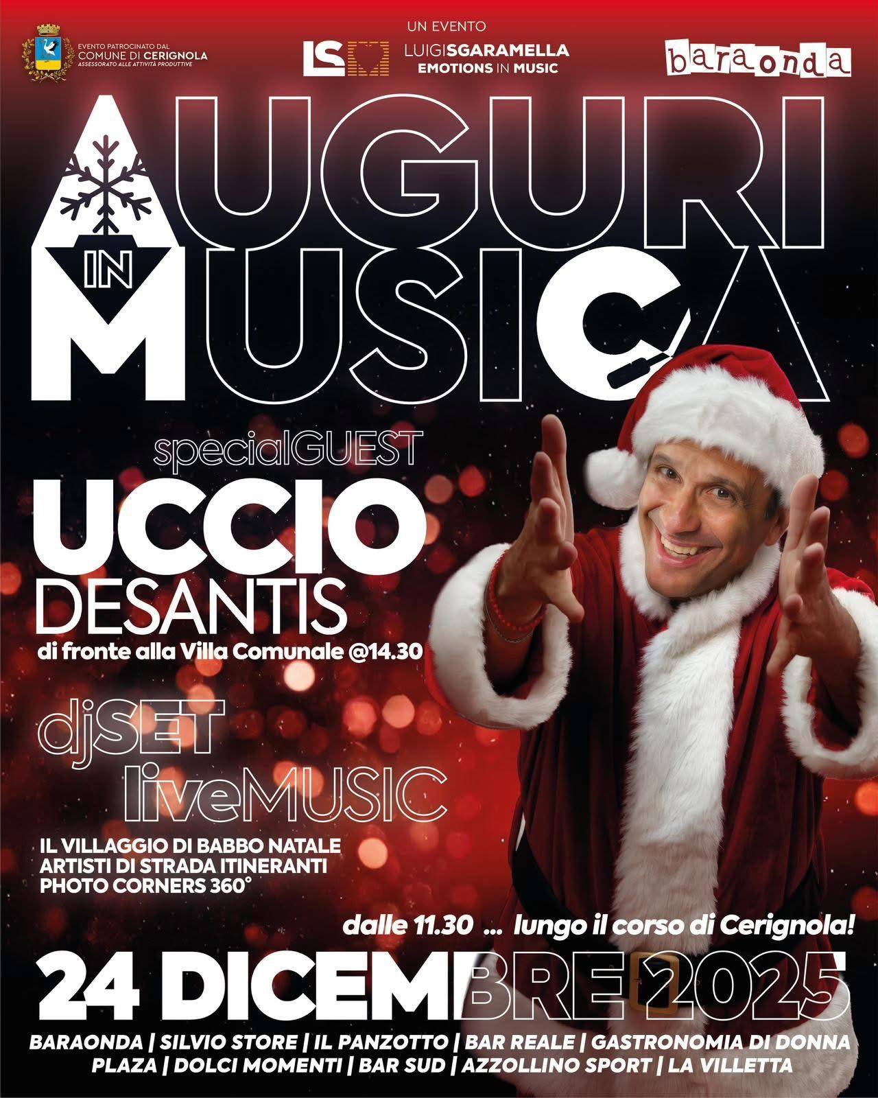 Si parte la Vigilia di Natale con l’ormai tradizionale appuntamento di “Auguri in Musica”, targato Sgaramella Eventi: il corso cittadino si trasformerà in un vero e proprio salotto urbano, luogo di incontro e condivisione per scambiarsi gli auguri.