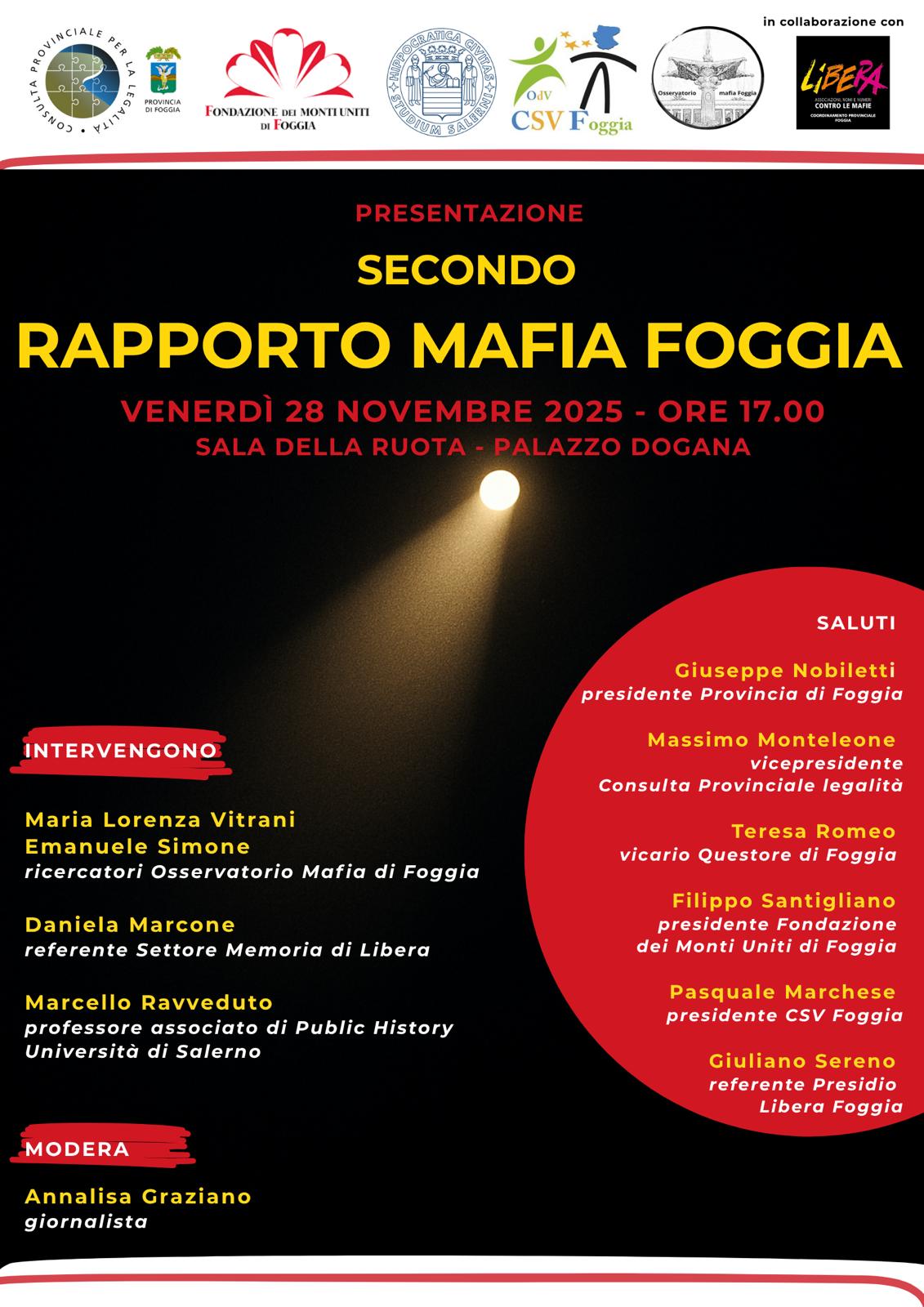 È da questo sguardo sulla narrazione – più che sulla cronaca – e da una felice intuizione che nasce il secondo “Rapporto Mafia Foggia”, frutto della ricerca promossa dal CSV Foggia nell’ambito delle attività della Consulta Provinciale per la Legalità, in collaborazione con l’Università di Salerno e con il supporto del Presidio Libera Foggia “Nicola Ciuffreda e Francesco Marcone”.