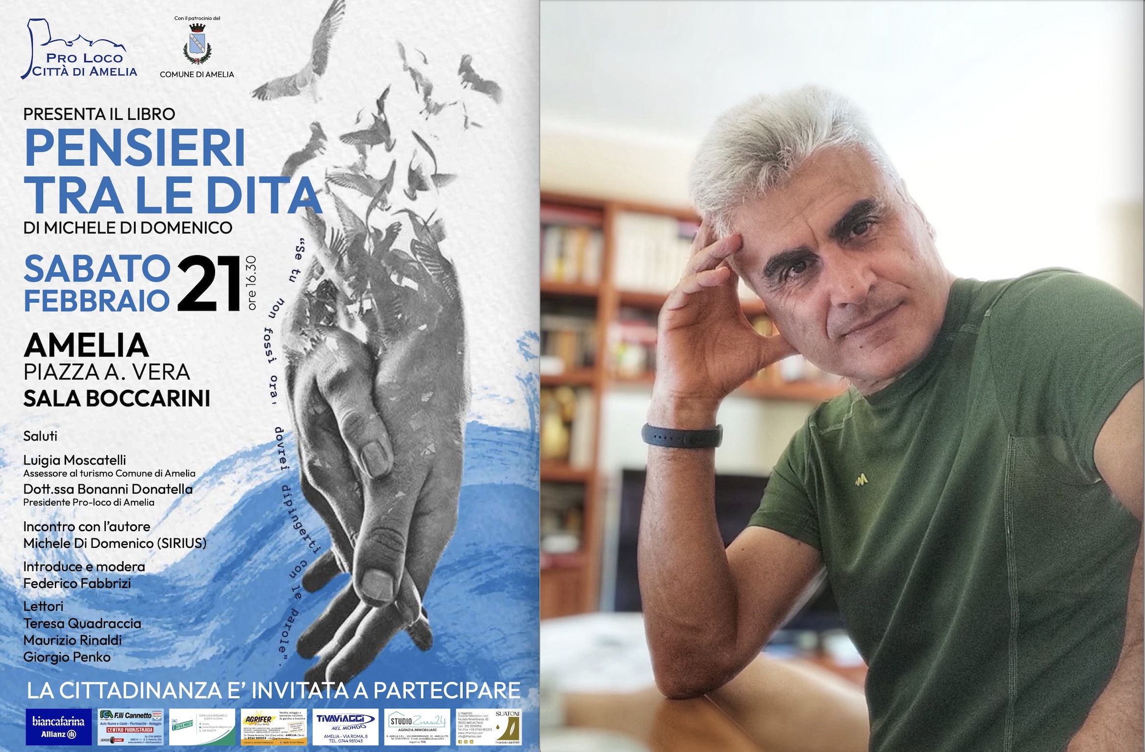 Sabato 21 febbraio il poeta orsarese presenterà ad Amelia la sua raccolta “Pensieri tra le dita”