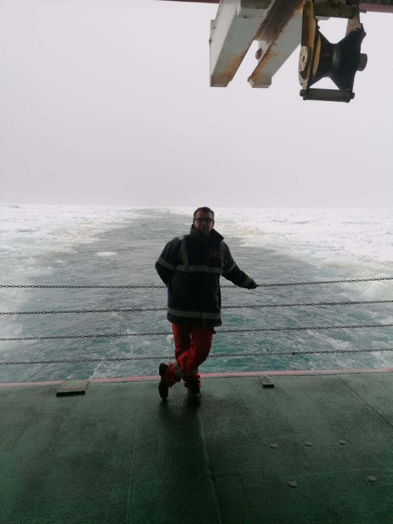 Pio Riccardi, Marinaio di Lungo Corso, nato a Manfredonia, classe 1963, imbarcato su navi mercantili di diverso genere da oltre 20anni, oggi a bordo della nave ricerca “Laura Bassi” in navigazione verso la base antartica italiana “Ing. Mario Zucchelli “ per una spedizione scientifica di largo spettro.