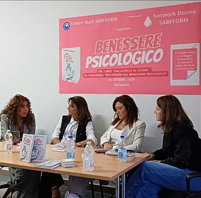 Si è svolto presso il Centro Studi SABEFORM, in collaborazione con Network Donna Sabeform, il convegno “Benessere Psicologico – Dal libro ‘Dalla pelle al cuore’ al convegno”, un pomeriggio interamente dedicato al tema del benessere della mente e del corpo.