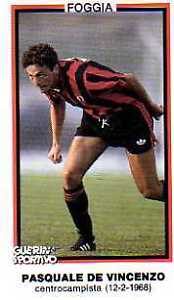 Pasquale De Vincenzo ha giocato quattro stagioni a Foggia dal 1992 al 1996, di cui tre in Serie A. Estate 1992. In città si respira aria di contestazione, dopo la cessione dei pezzi da novanta come Signori, Baiano e Shalimov protagonisti della storica annata 1991/92. Al loro posto, giovani di belle speranze e calciatori provenienti dalle serie minori. Tra questi, Pasquale De Vincenzo reduce da un campionato di Serie C con la Reggina. Ecco che si materializza il capolavoro del Foggia di Zeman-Casillo e Pavone, la stagione 1992/93. De Vincenzo ci mette poco ad entrare nel clima “Serie A”: tecnica squisita, intelligenza calcistica, passo elegante e mente fredda. Non conta la categoria quando si possiedono queste caratteristiche. Resta a Foggia anche in Serie B (1995/96), per un totale di 116 presenze, indossando anche la fascia da capitano e vestendo la maglia numero 10.