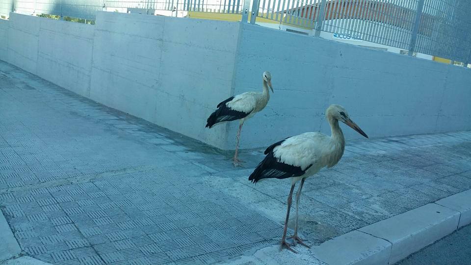 Domenica scorsa un sorprendente spettacolo si è offerto alla vista dei cittadini di Manfredonia. Una coppia di giovani cicogne bianche ha sostato dal pomeriggio e per un’intera notte nei pressi della piscina comunale, in pieno centro abitato. Nella stessa serata il comando di polizia municipale di Manfredonia ha contattato il Centro Studi Naturalistici ONLUS e il servizio veterinario dell’ASL per concordare un eventuale intervento di recupero. Considerato che gli esemplari non mostravano alcun tipo di difficoltà o segno di malessere, si è optato per una discreta sorveglianza, egregiamente operata dai vigili urbani per evitare problemi con i tanti spettatori nel frattempo intervenuti a godersi l’insolito spettacolo. In tarda serata i due esemplari sono stati delicatamente sospinti verso un adiacente giardino privato di un cittadino manfredoniano, il sig. Pasquale Rignanese, che ha dato la propria disponibilità ad “ospitarle” per il resto della notte. Alle 9,30 del mattino successivo, dopo essersi rifocillate con qualche insetto e lucertola catturati nel giardino del sig. Rignanese, hanno ripreso il volo in perfetta salute.