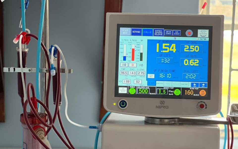 Nelle immagini inviate venerdì il 24 febbraio 2023 dalla Dott.ssa Rose Muhindo, nefrologa e coordinatrice del progetto presso l’Ospedale di Mbarara, si vedono le cinque macchine Fresenius per l’emodialisi, con incluso un impianto per il trattamento dell’acqua di dialisi funzionanti.