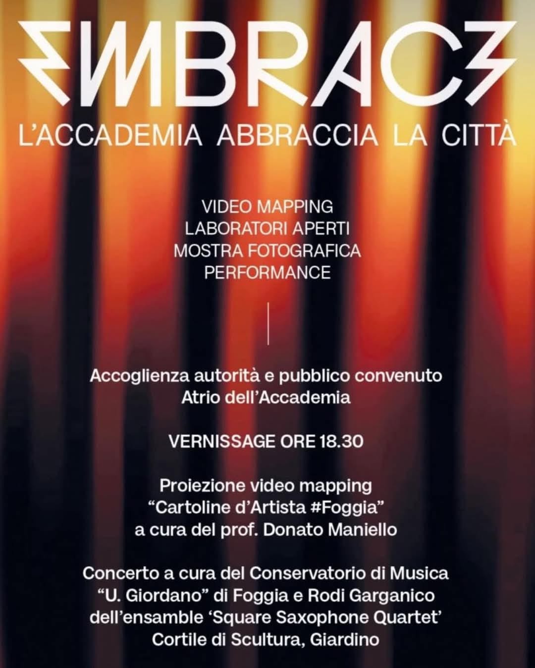 Sarà una festa delle arti che vedrà gli studenti affiancarsi al corpo docente e a tutto il personale amministrativo, per una manifestazione ideata dal Commissario straordinario on. Nicola Ciracì e dal direttore eletto prof. Antonino Foti che nasce in profonda sintonia con il Comune di Foggia.