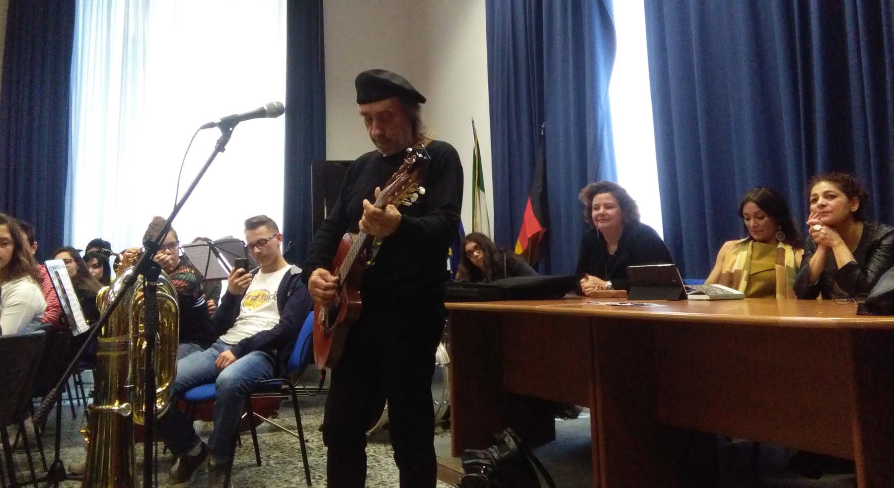 In cattedra, per un giorno, un insegnante speciale: Fausto Mesolella. Artista eclettico e appassionato, tra i musicisti più originali nel panorama nazionale, Fausto ha dato ai ragazzi lezioni di vita, oltre che di musica.