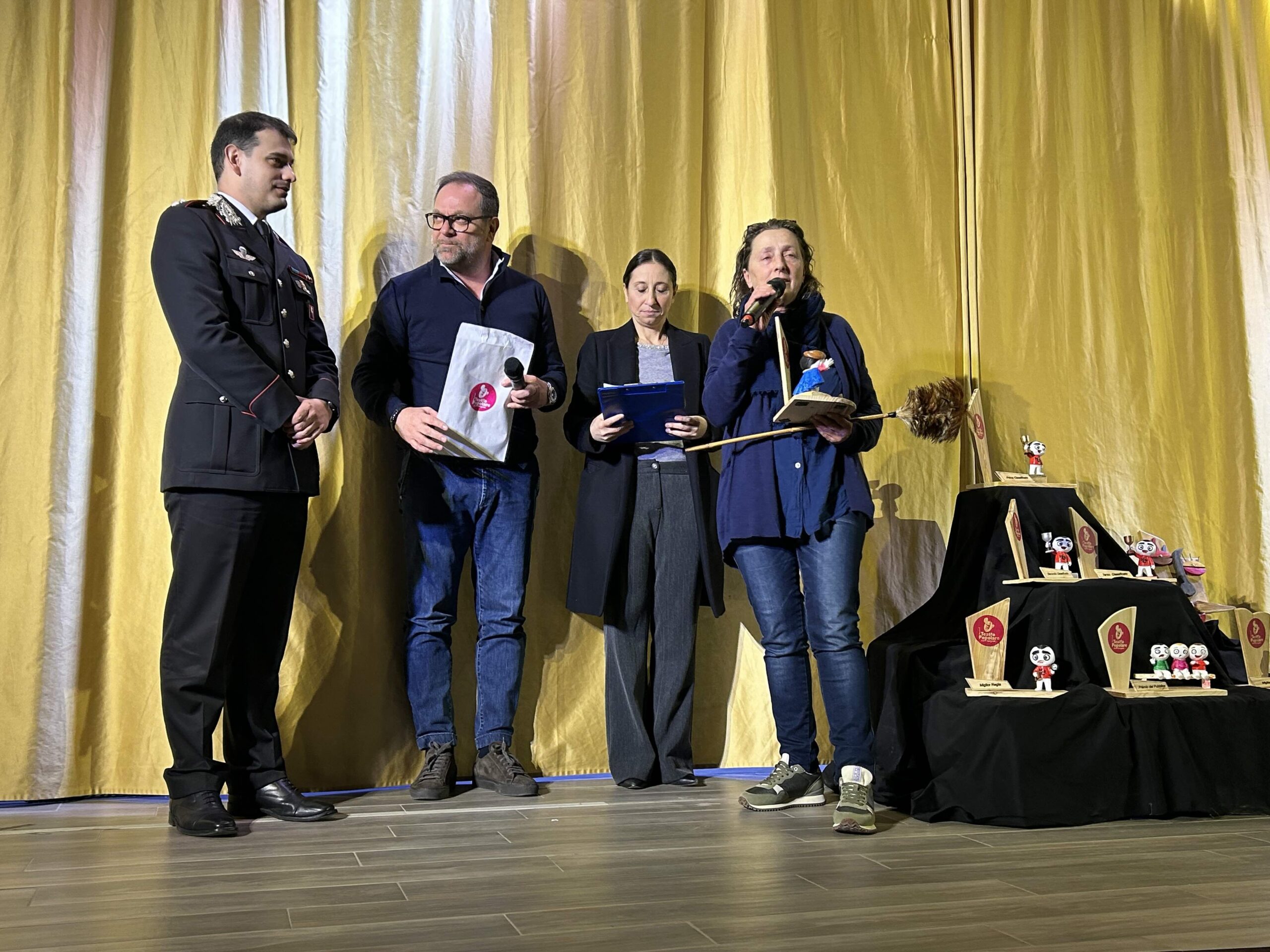 VICO DEL GARGANO – Auditorium Lanzetta sold out anche per l’ultima trionfale serata del Festival del Teatro Popolare del Gargano, quella di sabato 14 marzo, con una partecipatissima cerimonia di premiazione a cui è seguito lo spettacolo fuori concorso “La figlia di Zì Cicco”. Vincitrice assoluta della quarta edizione è la “Compagnia della lira”, di Casamassima (Bari), che sul palco di Vico del Gargano lo scorso 21 febbraio ha portato la commedia-musical “Che pasticcio Mrs Peach”. Il gruppo teatrale barese si è aggiudicato anche il Premio del Pubblico. Sul secondo gradino del podio è salita “La Quinta Parete”, compagnia teatrale di Teramo, alla quale è stato riconosciuto anche il Premio FITA (Federazione Italiana del Teatro e delle Arti) per la commedia “L’ultima luna”. Terza classificata e premio per la miglior regia alla compagnia friulana “Proscenium”, di Azzano Decimo (Pordenone), che al Festival si è fatta apprezzare con “Super”, commedia firmata da Roberto Ciufoli. Per la giuria, all’unanimità, il premio quale Migliore Attrice è stato assegnato a Laura Testi, della compagnia “L’Antica Fraschetta” di Bùcine (Arezzo), per la sua magistrale interpretazione di Gemma in “Abbasso i mariti”. Il premio al migliore attore è stato assegnato a Gaetano Nittolo, della compagnia avellinese “Artemanus”, per l’interpretazione del personaggio Vincenzo nella commedia “Non mi dire te l’ho detto”.