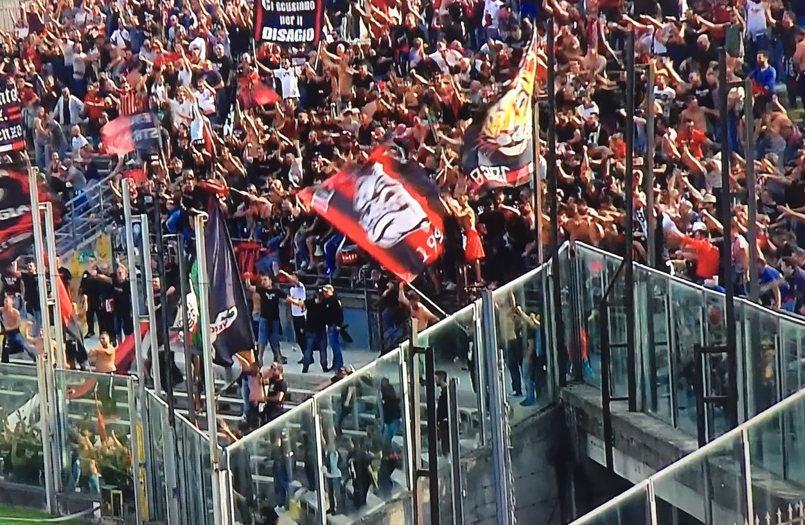 La tifoseria rossonera si è così riversata in massa nell’ area sottostante quando era ancora in corso il deflusso dei tifosi scaligeri.