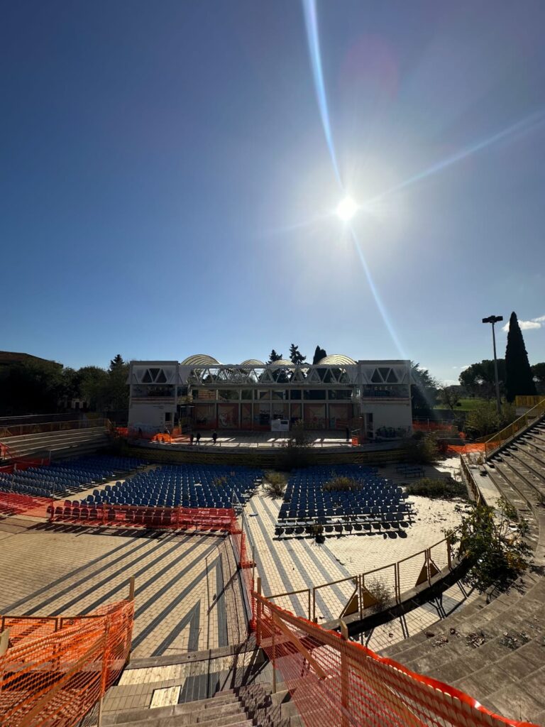 Oggi quella occasione è finalmente arrivata. L’Amministrazione comunale annuncia con orgoglio l’avvio dei lavori che restituiranno alla città un’arena moderna, sicura e accessibile, con una capienza di 3.300 posti, pronta a riaccogliere eventi di musica, teatro, danza e ogni altra forma d’arte. Da questo momento parte una maratona di 476 giorni di lavoro, che porterà a dare inizio a una nuova vita per l’Anfiteatro Mediterraneo. Una sfida concreta, che unisce impegno tecnico e passione civica.