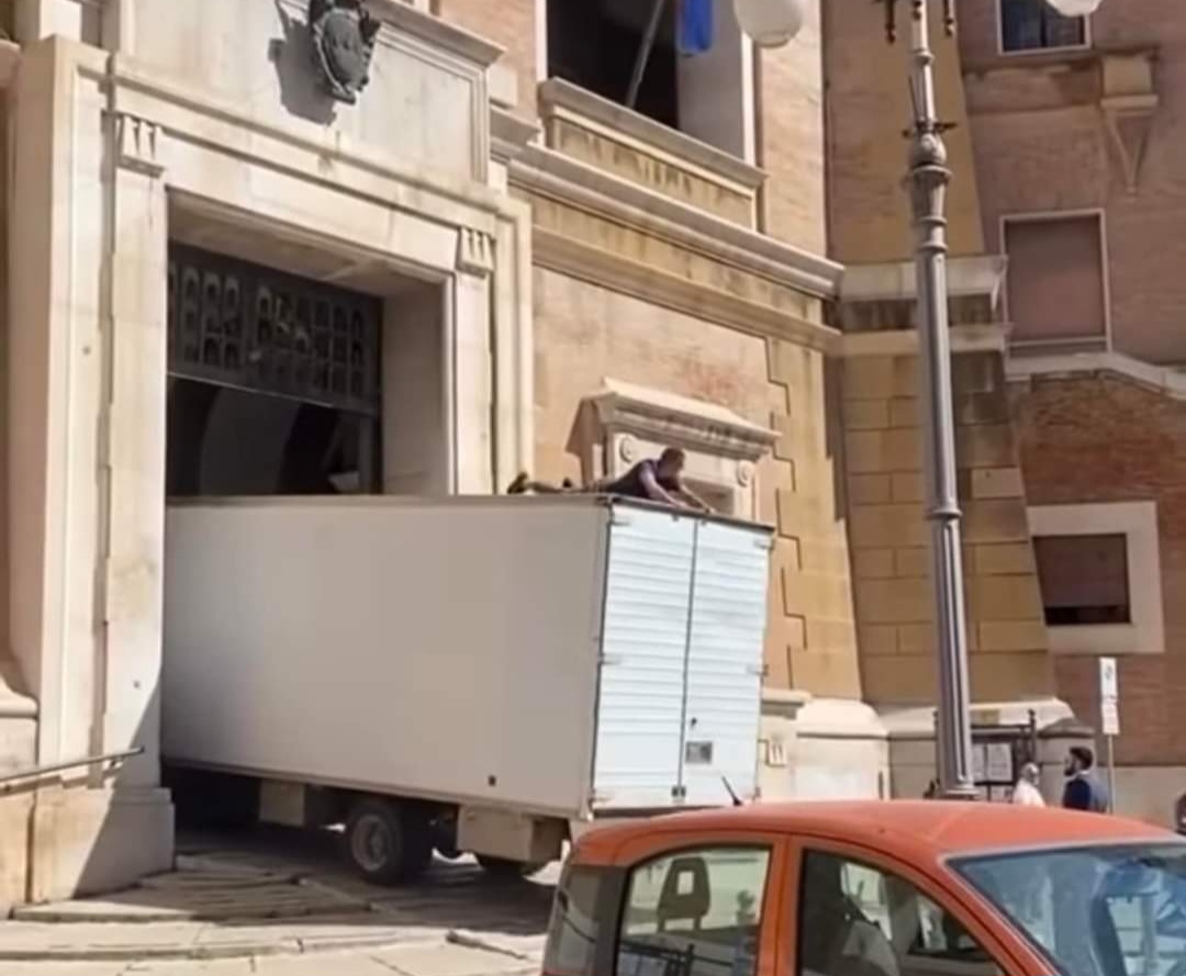 “Ho visto come tanti – è stato il commento dell’assessore alle Politiche per il Lavoro al Comune di Foggia Lorenzo Frattarolo – il video diventato virale sui social di un camion che entra dal portone di Palazzo di