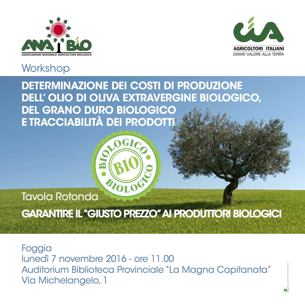 “Garantire il giusto prezzo ai produttori biologici”: è questo il tema al centro della tavola rotonda che si terrà oggi, lunedì 7 novembre 2016, alle ore 11, nell’auditorium della Biblioteca provinciale di Foggia, in viale Michelangelo 1. L’incontro è organizzato da ANABIO, Associazione Nazionale Agricoltura Biologica, e CIA Agricoltori Italiani. I lavori cominceranno alle 11.30 con i saluti di Giulio Sparascio, vicepresidente Cia Puglia. A seguire, ci sarà la relazione introduttiva di Federico Marchini, presidente ANABIO. Alle 12, col coordinamento del direttore ANABIO Antonio Sposicchi, sono previsti gli interventi di Simonetta Deleo (Crea) e Daniele Fichera (FederBio). Dopo il buffet con prodotti biologici, la tavola rotonda riprenderà alle ore 14 con l’apertura della sessione pomeridiana affidata a Raffaele Carrabba, presidente regionale CIA Agricoltori Italiani della Puglia. L’incontro pomeridiano sarà coordinato dalla giornalista Mariangela Mariani e prevede gli interventi di: Colomba Mongiello, vicepresidente della Commissione parlamentare d’inchiesta sui fenomeni della contraffazione; Paolo Carnemolla, presidente di Federbio; Gennaro Sicolo, presidente CNO Consorzio Nazionale Olivicoltori; Leonardo Di Gioia, assessore all’Agricoltura della Regione Puglia; Dino Scanavino, presidente nazionale CIA Agricoltori Italiani.