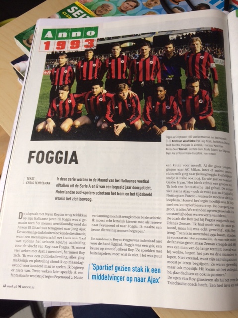 Il Foggia del 1993 sulla prestigiosa rivista sportiva “Voetbal International”. Grazie ad una collaborazione tra Simone Clara, Direttore di Foggia Reporter, ed il giornalista olandese Chris Tempelman, l’undici rossonero che nella stagione 1993/94 disputò il suo miglior campionato in Serie A, nella cui formazione militava l’olandese Bryan Roy, è finita sulle prime pagine del magazine noto in tutto il mondo per gli appassionati di sport.