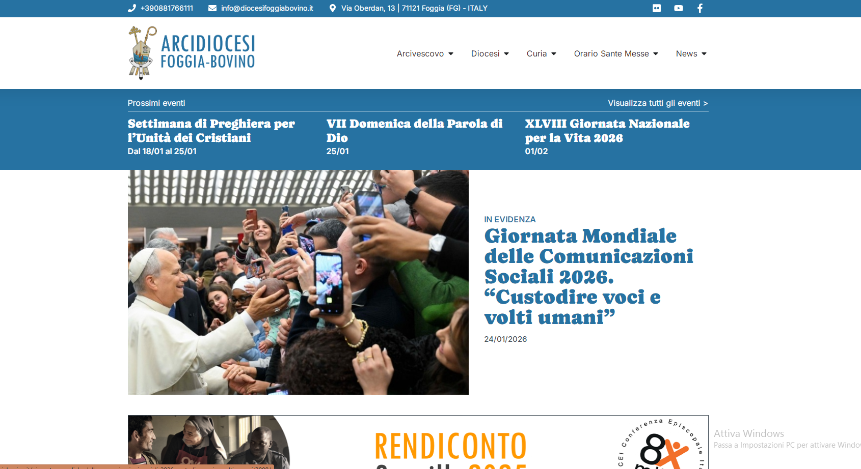 FOGGIA – È online il nuovo sito web dell’Arcidiocesi Metropolitana di Foggia-Bovino
