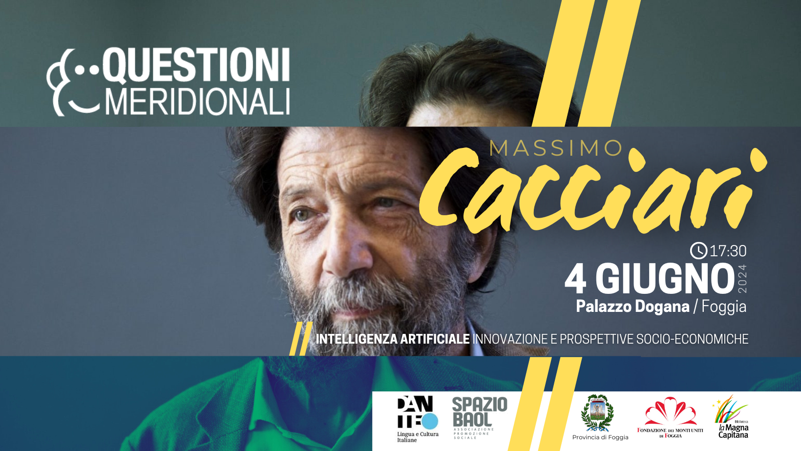Foggia – Il filosofo Massimo Cacciari sarà a Foggia martedì 4 giugno alle 17.30, per la prima giornata del Festival ‘Questioni Meridionali’, L’incontro si svolgerà a Palazzo Dogana, e sarà introdotto e moderato da Rossella Palmieri, professore ordinario di Letteratura italiana dell’Università di Foggia. Il Festival è organizzato L’appuntamento è promosso dalla Società Dante Alighieri, Aps SpazioBaol in collaborazione con la Provincia di Foggia, la Fondazione dei Monti Uniti e la Biblioteca ‘La magna Capitana’. Al centro della conversazione di Cacciari il tema dell’Intelligenza Artificiale. Secondo il filosofo veneziano, in presenza di tecnologie che potrebbero decidere, in maniera svincolata dalla volontà dell’uomo, del destino di tutti, l’alternativa sarebbe l’algocrazia, e cioè il potere degli algoritmi. Segnali che spingono Cacciari a parlare della necessità impellente di un umanesimo planetario all’altezza di queste prospettive scientifiche e tecnologiche.
