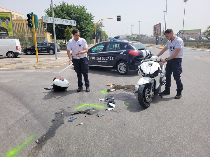 FOGGIA – È di tre feriti il bilancio dell’incidente stradale avvenuto questo pomeriggio intorno alle ore 14:30 all’incrocio tra viale degli Aviatori e via de Petra a Foggia. Ad entrare in collisione una Lancia Ypsilon ed un motociclo. I due che viaggiavano a bordo del motociclo e la donna che guidava la Lancia Ypsilon sono stati trasportati al pronto soccorso del Policlinico di Foggia. (Foto Voce di Foggia)