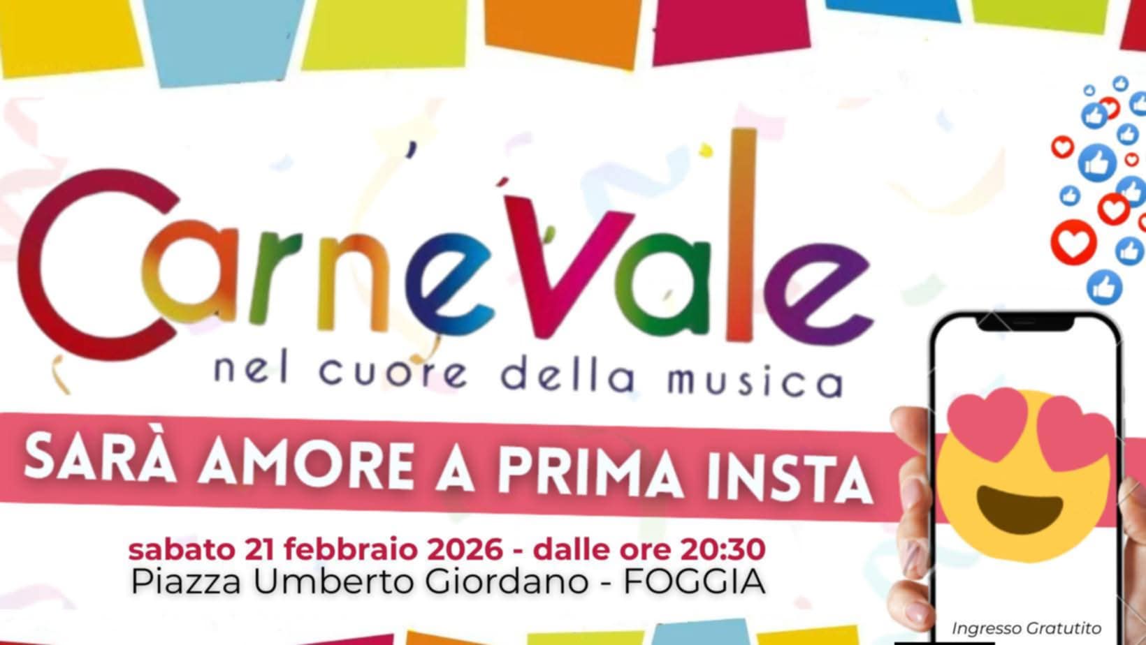 Protagonisti di questa edizione 2026 del Carnevale foggiano saranno i giovani talenti della nostra terra, ci sarà un ospite d’eccezione che farà cantare l’intera Piazza Giordano (il nome sarà svelato giovedì 12 Febbraio).