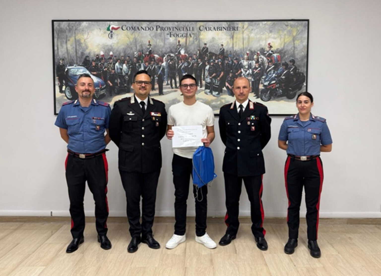 FOGGIA – Un gesto di sincera ammirazione verso l’Arma dei Carabinieri è arrivato da Fabio, un giovane studente foggiano, che ha scelto di dedicare la propria tesina di terza media alla storia, ai valori e ai compiti della Benemerita. Il ragazzo ha concluso il suo percorso di studi presentando alla commissione un elaborato che testimonia il suo profondo rispetto per l’Istituzione e il desiderio, un giorno, di indossarne la divisa. Appresa la notizia i Carabinieri di Foggia hanno voluto incontrarlo. Accompagnato dalla famiglia, è stato quindi accolto presso la sede della Compagnia Carabinieri di Foggia dal Maggiore Giancarlo Pallotta, insieme al Comandante e ai militari della Stazione capoluogo, che hanno espresso gratitudine per la sensibilità dimostrata.