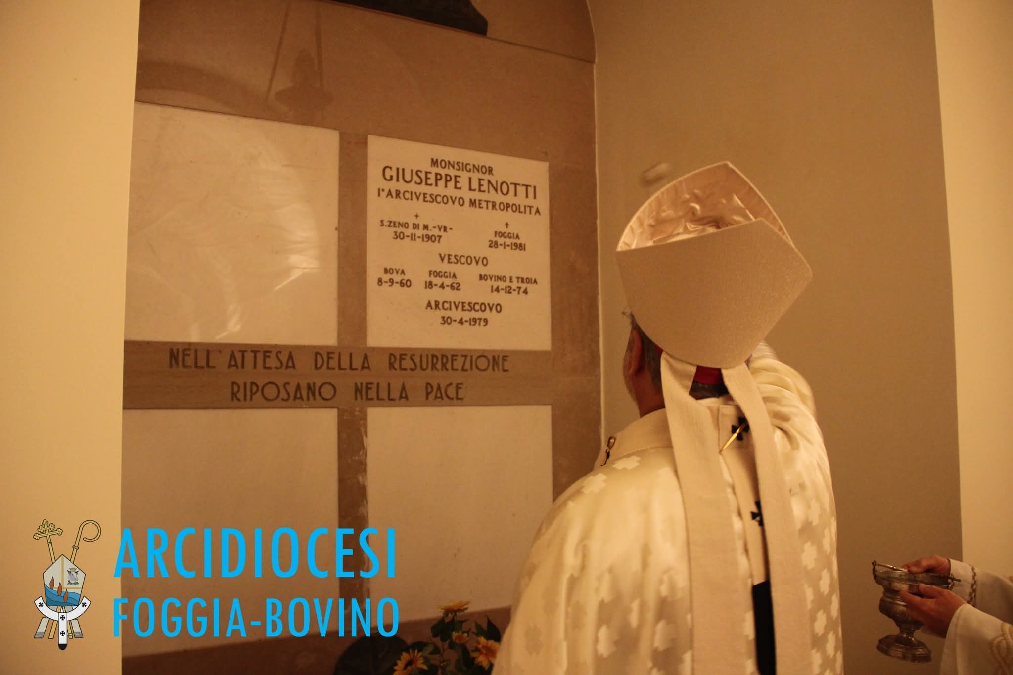 Terminata la celebrazione, mons. Ferretti, in processione, assieme agli altri sacerdoti concelebranti e ai fedeli, ha raggiunto il succorpo, dove, in attesa della risurrezione, riposano in pace i Vescovi Lenotti, Cosenza e Frascolla. Qui ha asperso le tombe dei Vescovi con l’acqua benedetta.