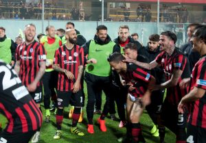 Soltanto due minuti e il Foggia è già in vantaggio: troppo per una Paganese volenterosa ma impotente dinanzi alla determinazione degli uomini di Stroppa, a cui manca l’acuto per chiudere la gara già nella prima frazione di gioco. Ad inizio ripresa le stoccate di Mazzeo e Deli chiudono la pratica, il resto è accademia, con un occhio rivolto a Cosenza, con il Lecce incapace quantomeno di mantenere il meno quattro in classifica dai rossoneri. I giallorossi non vanno oltre il pareggio a reti bianche, e consegnano al Foggia il match point: tra i satanelli e la Serie B adesso sei finali. Le prossime due trasferte (Catanzaro e Caserta) determinanti per chiudere il discorso e riscrivere la storia.