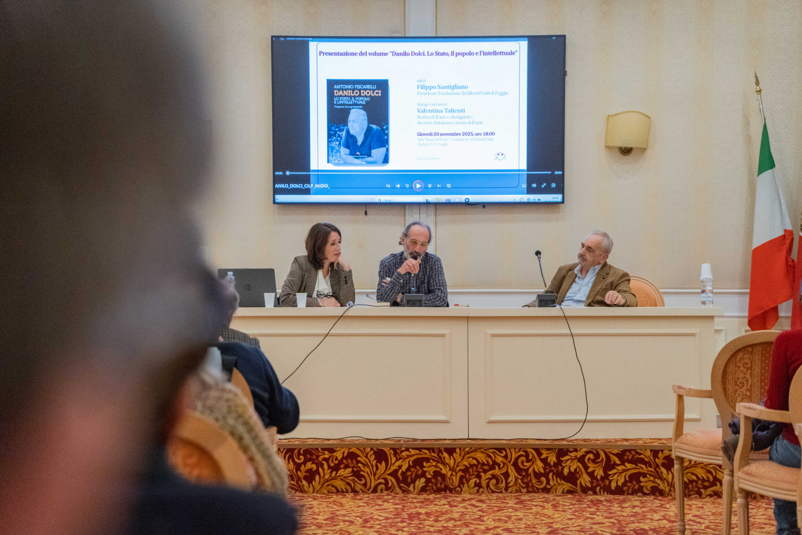FOGGIA – Si è tenuta giovedì 20 novembre, nella sala “Rosa del Vento” della Fondazione dei Monti Uniti di Foggia, la presentazione del saggio “Danilo Dolci. Lo Stato, il popolo e l’intellettuale” di Antonio Fiscarelli (Castelvecchi, 2025), un appuntamento dedicato alla riscoperta di una delle figure più complesse e significative dell’impegno civile italiano.