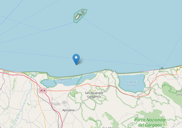 FOGGIA – Una leggera scossa di terremoto di magnitudo 2.5 è stata registrata alle ore 6:49 di questa mattina, giovedì 15 maggio 2025, al largo del Gargano. Secondo i dati dell’Istituto Nazionale di Geofisica e Vulcanologia (INGV) di Roma, l’ipocentro del sisma è ad una profondità di circa 6 chilometri. Non si segnalano danni a persone o cose.