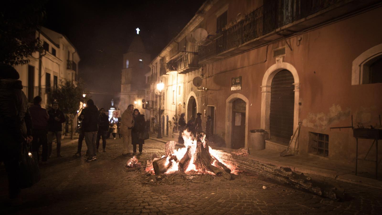 Tra le manifestazioni cerimoniali di cui si compone la festa, la più appariscente è quella dell’accensione dei fuochi. Già alcuni giorni prima della ricorrenza in paese si inizia la raccolta della legna che è successivamente accumulata in grandi covoni. L’origine di queste pratiche è legata ad una tradizionale leggenda che vuole il santo capace di guarire l’”herpes zoster”, anche noto come “fuoco di sant’Antonio”. Il tipico rumore delle fiamme è accompagnato da canti e balli folkloristici, che si protraggono fino all’estinzione del fuoco.