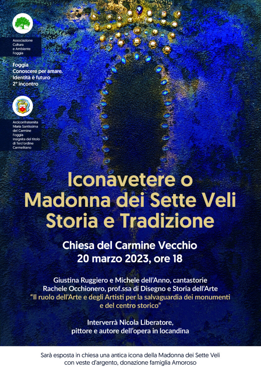 Interessante incontro, domani pomeriggio nella chiesa del Carmine Vecchio, dedicato alla lettura e rilettura in chiave storico-artistica dell’Iconavetere o Madonna dei Sette Veli. Appuntamento ore 18.00