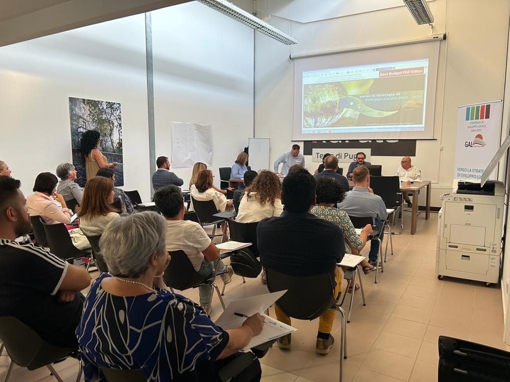 Sei i laboratori tematici su agricoltura, turismo, cultura, neo-imprenditorialità e opportunità dei giovani che, con un percorso itinerante, hanno prodotto un proficuo confronto da cui partirà, in base ai suggerimenti raccolti nei singoli appuntamenti, la stesura di una proposta di Strategia di Sviluppo Locale da candidare all’Avviso Pubblico emanato dalla Regione Puglia e rivolto a tutti i GAL pugliesi.