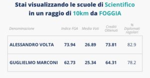 Si tratta della nota classifica di Eduscopio stilata con i dati aggiornati sulle scuole superiori che meglio preparano agli studi universitari o al lavoro dopo il diploma. Ottimo risultato per il Liceo scientifico ‘Alessandro Volta’ di Foggia, fiore all’occhiello del capoluogo dauno e della Puglia.