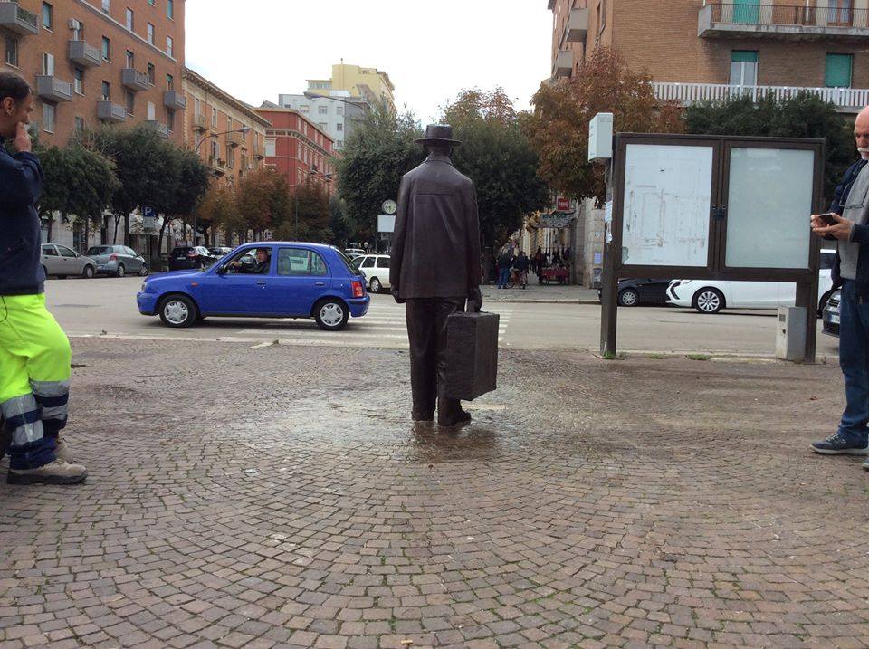 E’ tornata nella sua sede, sul piazzale della stazione di Foggia, la statua del “Viaggiatore”.
