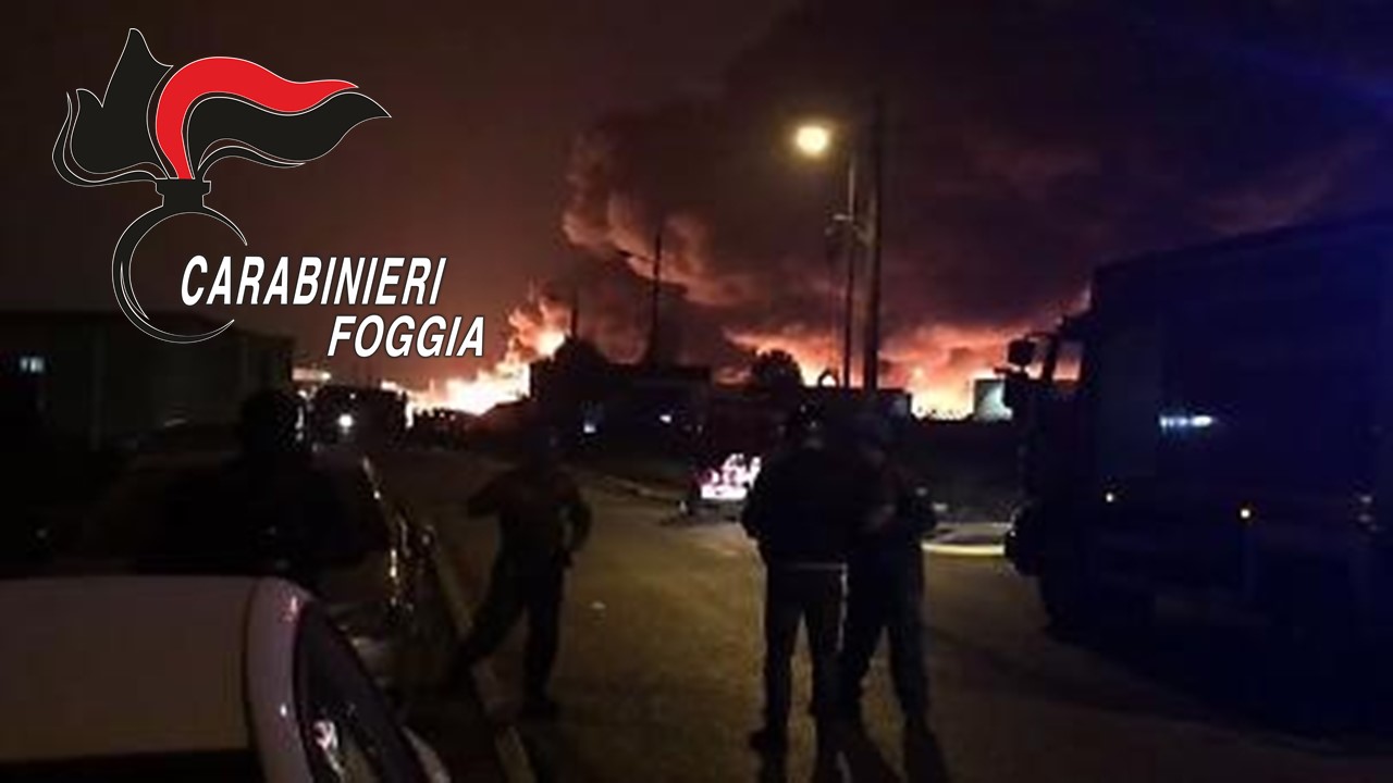 Alle prime luci dell’alba il blitz dei Carabinieri del Nucleo Operativo e Radiomobile del Comando Provinciale di Foggia per dare esecuzione, unitamente a personale dello Squadrone Eliportato Carabinieri Cacciatori Puglia e della Stazione Carabinieri di Carapelle, ad un’ordinanza di custodia cautelare in carcere emessa dal Tribunale di Foggia su richiesta della locale Procura della Repubblica, nei confronti di un uomo di 35 anni, nativo del capoluogo dauno, già noto alle forze dell’ordine, resosi responsabile dell’incendio avvenuto nell’ottobre 2019 di un capannone ubicato a Carapelle e utilizzato come deposito di stoccaggio di rifiuti solidi urbani dall’azienda S.I.A. Consorzio Igiene Ambientale di Carapelle.