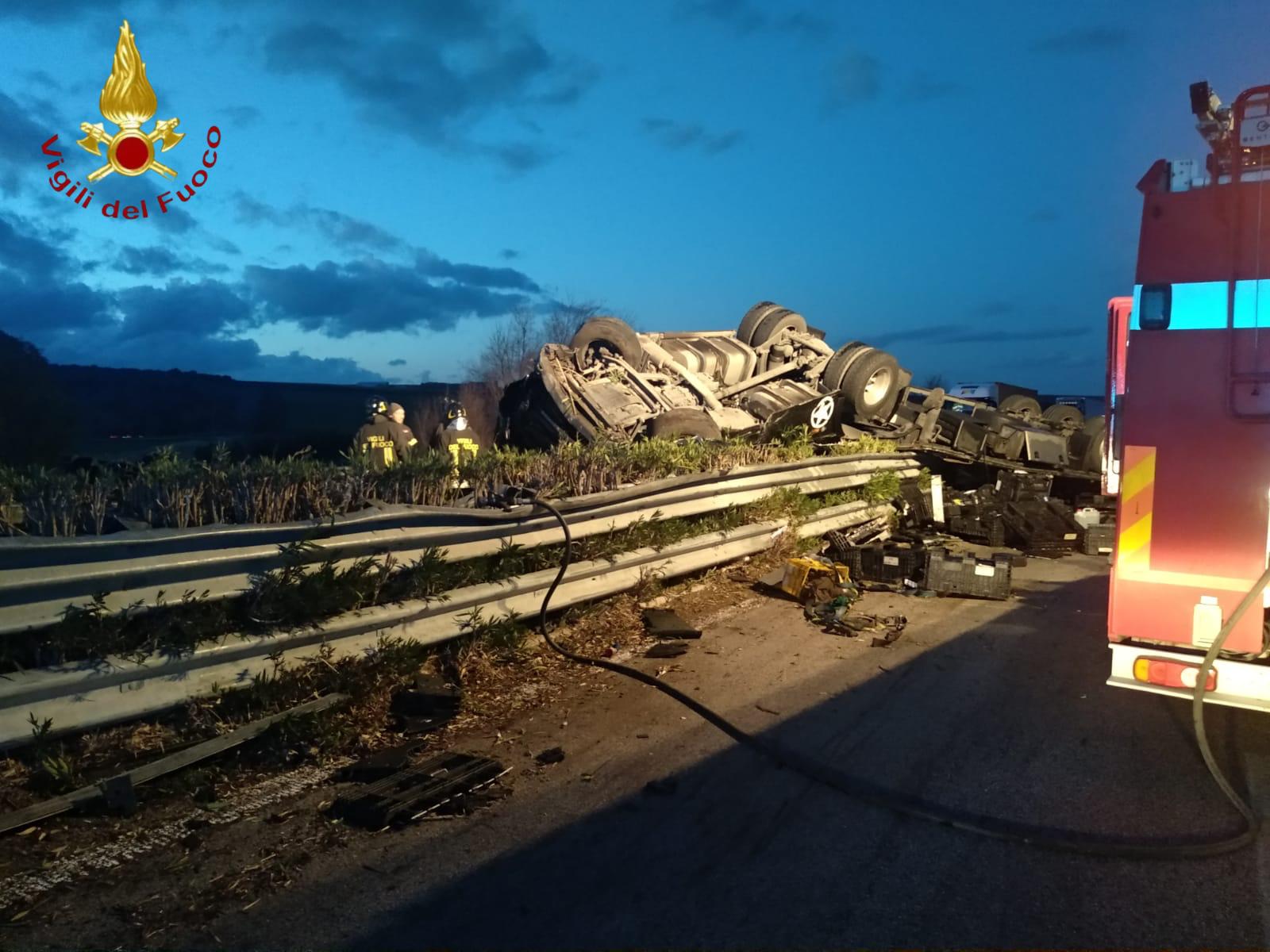 Un morto e un ferito. E’ il bilancio dell’incidente stradale avvenuto sulla statale 655 “la Bradanica” tra Foggia e Candela nei pressi dello svincolo per Deliceto. Per cause ancora da accertare un tir è sbandato ribaltandosi su un fianco, sfondando, il guard rail e finendo sull’altra corsia. Nell’incidente è rimasta coinvolta un’altra automobile.