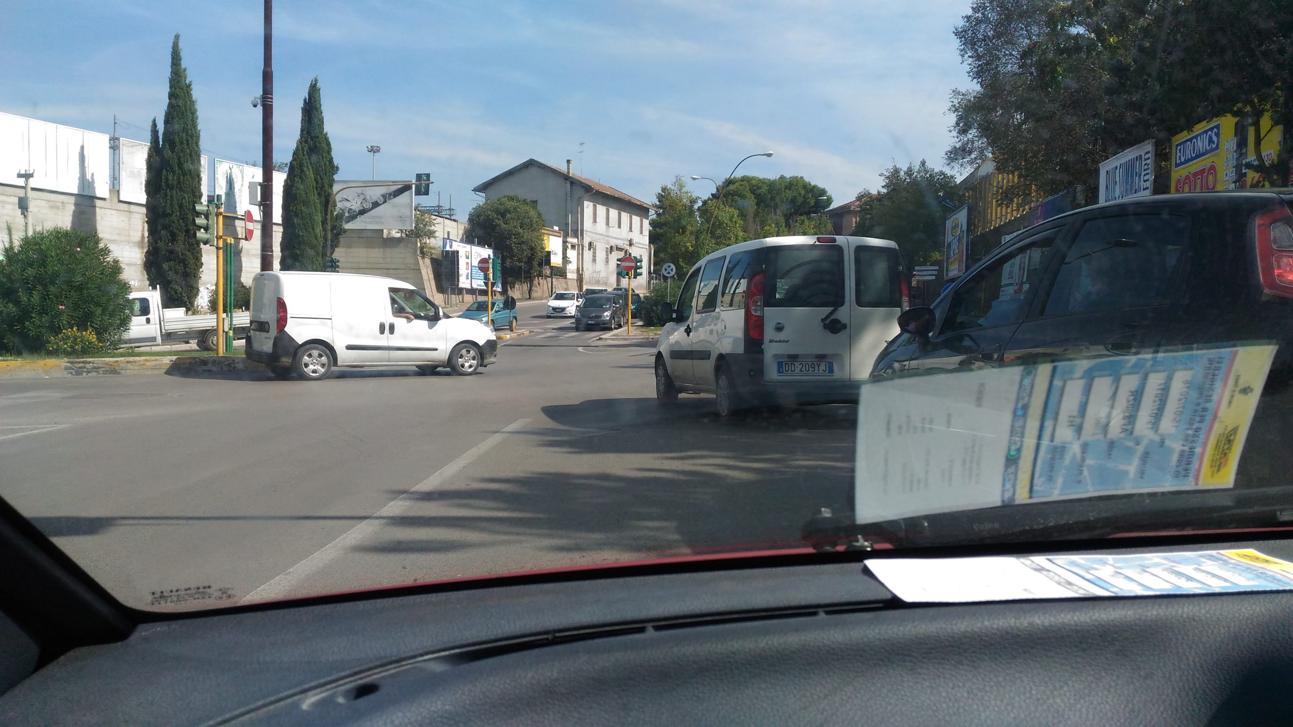 A questo va aggiunto il fatto che, molti automobilisti furbi si piazzano ben oltre il semaforo (come potete vedere in foto) non aspettando neppure che scatti il verde. Questo ovviamente crea una situazione di pericolo per tutti, furbetti e non. Mi chiedo come sia possibile che questa situazione va avanti da anni e nessuno prenda dei provvedimenti…forse una telecamera a quell’incrocio non sarebbe una cattiva idea.”