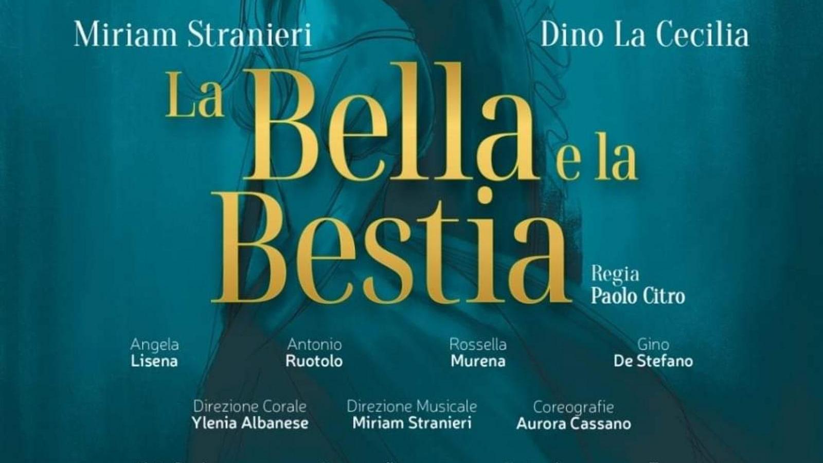 𝗜𝗟 𝗖𝗔𝗦𝗧. Dino La Cecilia e Rita Rendina nei ruoli della Bestia e di Belle. Con Antonio Sky Ruotolo, Christian Bondanese, Lorenzo Gianbattista, Raffaella Porciatti, Stefano Corsi e la piccola Martina Acquaviva. Lo spettacolo vede la regia di Paolo Citro, la direzione d’orchestra di Mario Longo, Miriam Stranieri e Ilenia Albanese curano rispettivamente la direzione musicale e corale, mentre le coreografie sono di Aurora Cassano. Le scenografie sono di Emma Morelli e Chiara Princigalli e i costumi di Angela Infante.