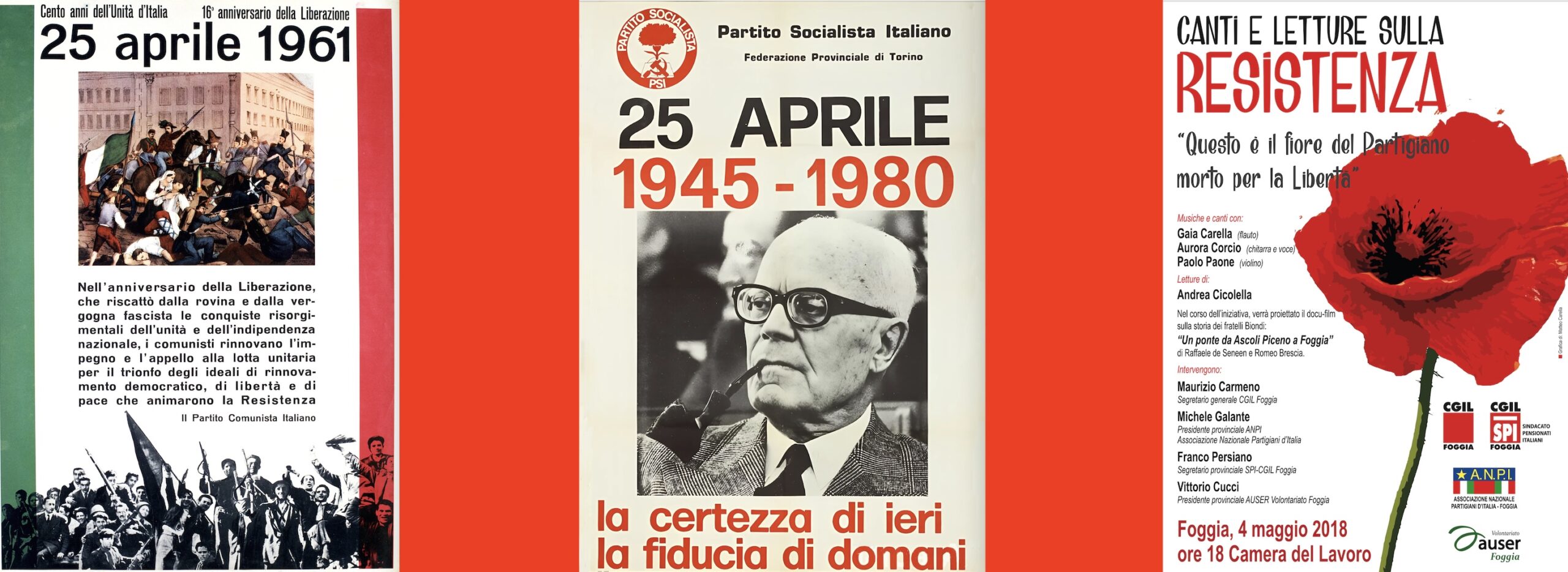 Ottant’anni di Liberazione in 80 manifesti: nell’80° anniversario della liberazione dell’Italia dal nazifascismo, l’Anpi di Capitanata ha allestito una mostra che ripercorre e celebra la ricorrenza attraverso immagini e parole che le forze politiche, associative, sindacali e le istituzioni elettive hanno dedicato al 25 aprile nei decenni.