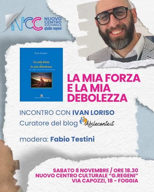 Ivan Loriso ha 40 anni ed è originario di Foggia. Affetto da una malattia rara, CIDP (Polineuropatia demielinizzante infiammatoria cronica), è curatore del blog abileconte.it, in cui racconta la “forza della diversità”.