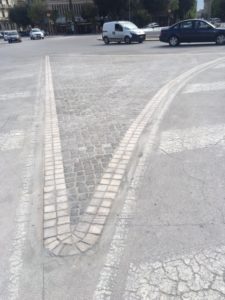 Oltre al disegno di quelle che volevano essere “isole di traffico” dobbiamo sollevare il problema del materiale usato per l’intervento perché, sempre l’art. 40 del Regolamento, dispone che “Le caratteristiche fotometriche, colorimetriche, di antiscivolosità e di durata dei materiali da usare per i segnali orizzontali, nonché i metodi di misura di dette caratteristiche, sono stabiliti da apposito disciplinare tecnico approvato con decreto del Ministro dei lavori pubblici, da pubblicare sulla Gazzetta Ufficiale della Repubblica”. I cubetti di porfido e di pietra rispondono alle caratteristiche fissate dalla direttiva del Ministero delle Infrastrutture e Trasporti del 05/08/2013 con relativo disciplinare tecnico e norme UNI a cui conformarsi ?