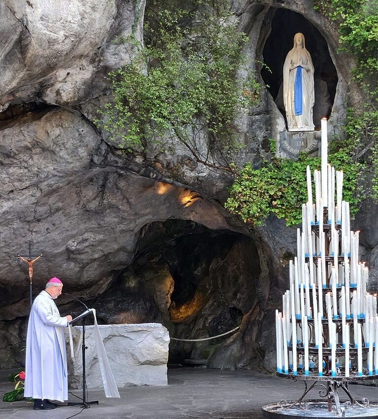 Tanti i momenti di preghiera vissuti insieme, come la Messa Internazionale o la processione serale aux flambeaux o la suggestiva preghiera del Santo Rosario davanti la grotta dove, nel 1858, la Vergine Maria apparve a una pastorella di nome Bernadette Soubirous. ieri pomeriggio la preghiera del Santo Rosario dalla Grotta di Lourdes è stata presieduta dall’Arcivescovo Ferretti .